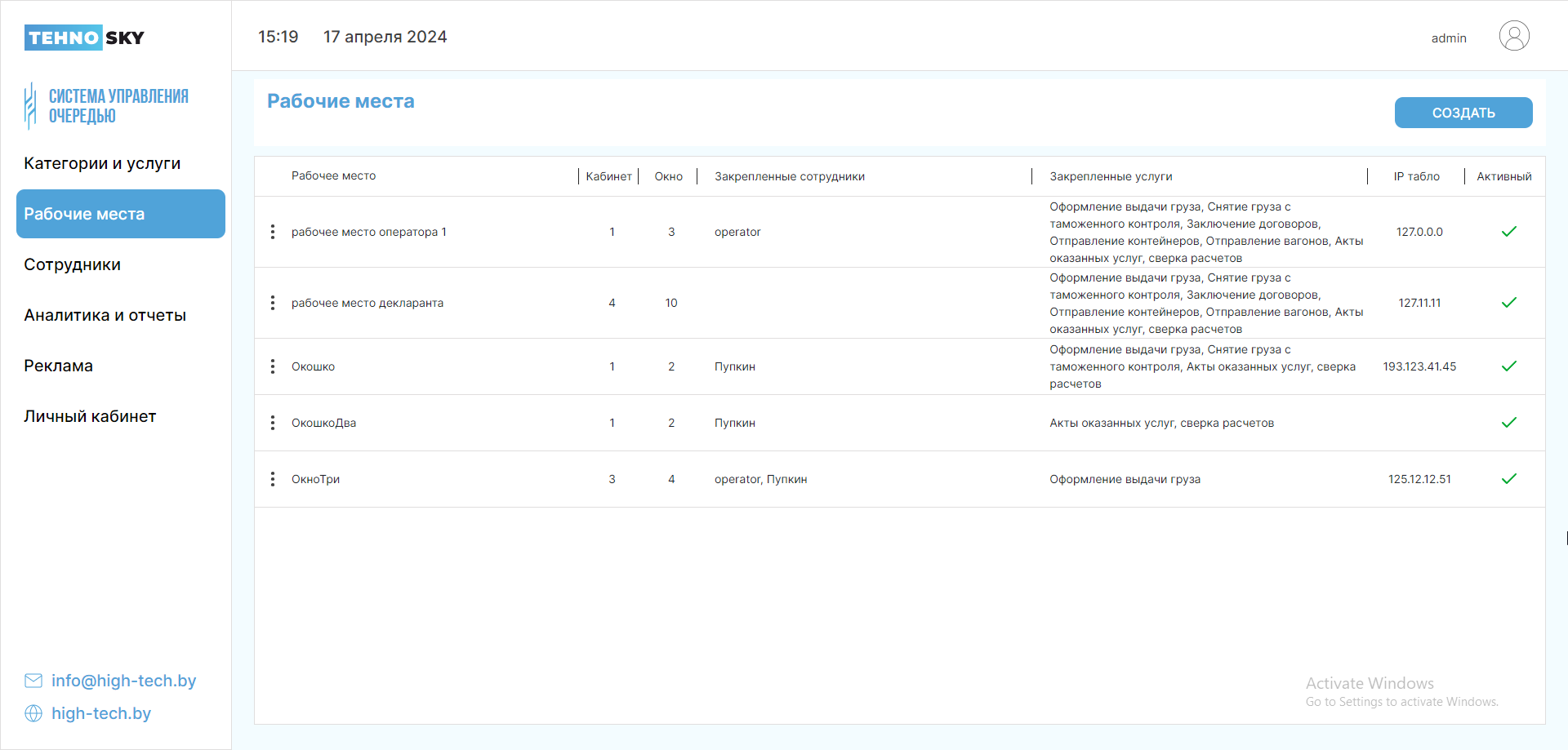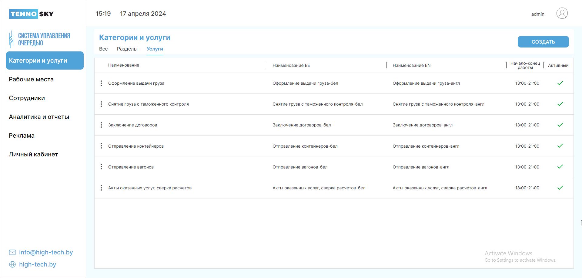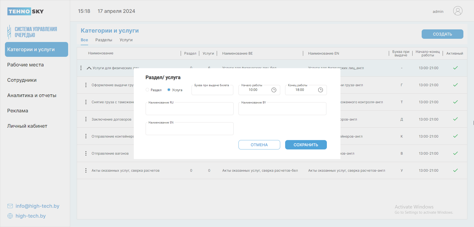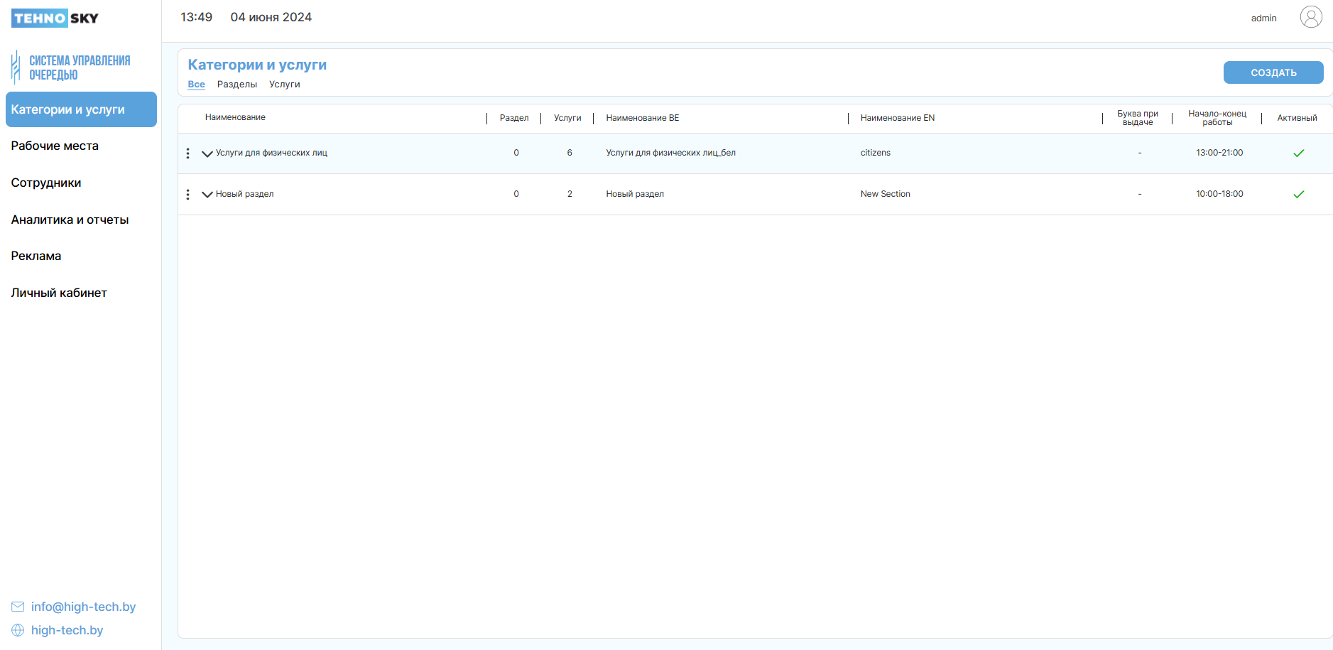 Внимание! Нельзя создать услугу с одной и той же буквой, даже если одна буква будет строчной, а другая – прописной. Поле нечувствительно к регистру.