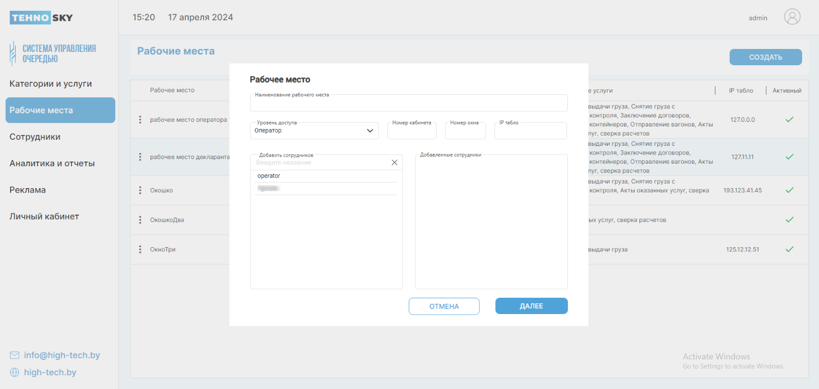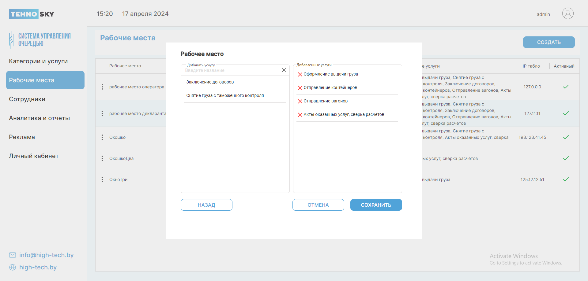 Услуги, которые уже были добавлены, Вы можете увидеть в поле Добавленные услуги. Чтобы удалить добавленные услуги, в поле Добавленные услуги нажмите пиктограмму Удалить рядом с наименованием нужной услуги.