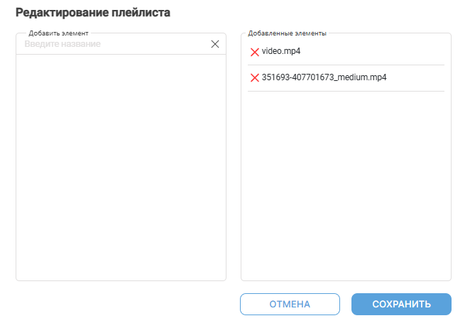 Чтобы удалить загруженное видео, в поле Выбранное видео выберите нужное видео и нажмите пиктограмму Удалить.