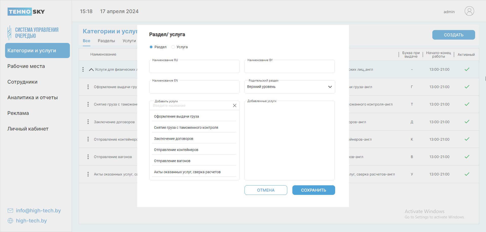 В открывшемся диалоговом окне выберите Категория или Услуга в зависимости от того, что Вам нужно создать.